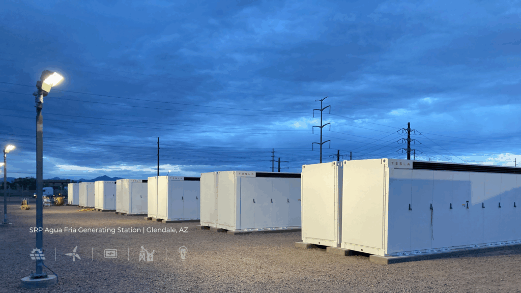At the SRP Agua Fria Generating Station in Glendale, BEI played a key role in the construction of a 25 MW / 100 MWh battery energy storage system—one of Arizona’s largest standalone BESS installations. Powered by 35 Tesla Megapacks and developed in partnership with Tesla Energy, Commonwealth Electric, and Blymyer Engineers, the system stores solar energy during periods of low demand and dispatches it during peak usage, helping stabilize the grid and reduce reliance on fossil fuels.